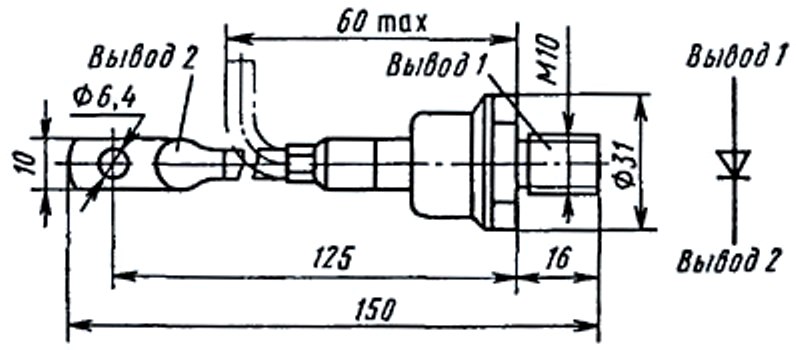 Предназначен для работы в цепях статических преобразователей электроэнергии постоянного и переменного токов на частотах до 2 кГц.