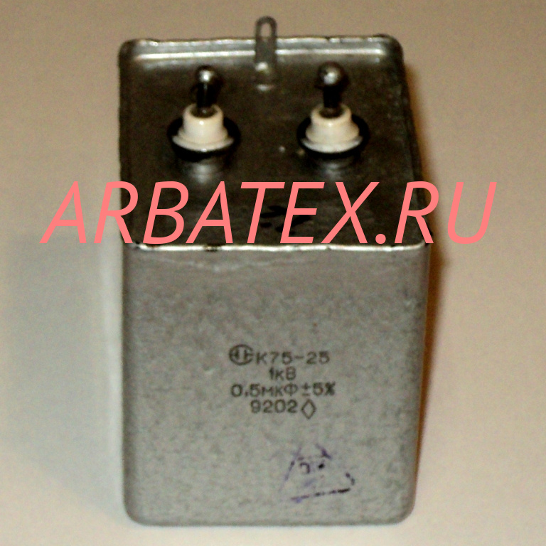 К75-25 1КВ 0.5мкФ конденсатор комбинированный, фольговый, уплотненный, неизолированный, постоянной емкости, предназначен для работы в качестве встроенных элементов внутреннего монтажа аппаратуры (в кожухе комплектного изделия) в цепях постоянного и пульсирующего токов и в импульсных режимах с частичной разрядкой емкости.