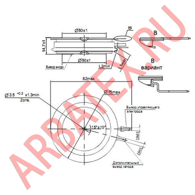Масса тиристора не более 70 г.